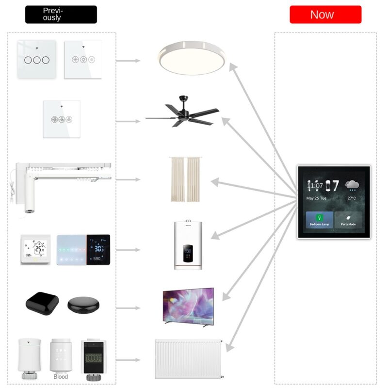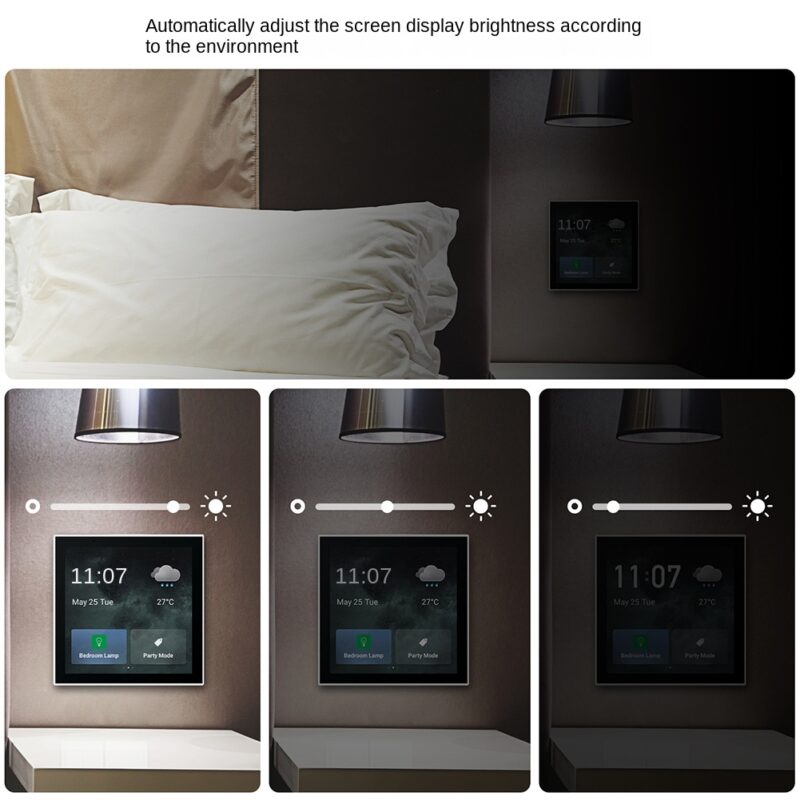 Rocktech RK-A4E kosketusnäyttö ohjauspaneeli tekee älykodin hallinnasta vaivatonta. Ohjaa valoja, verhoja, ilmastointilaitteita ja muita älylaitteita yhdellä kosketuksella. TUYA Smart -järjestelmän avulla voit määrittää älykkäät kotiskenaariot ja käynnistää ne helposti kosketusnäytöltä.