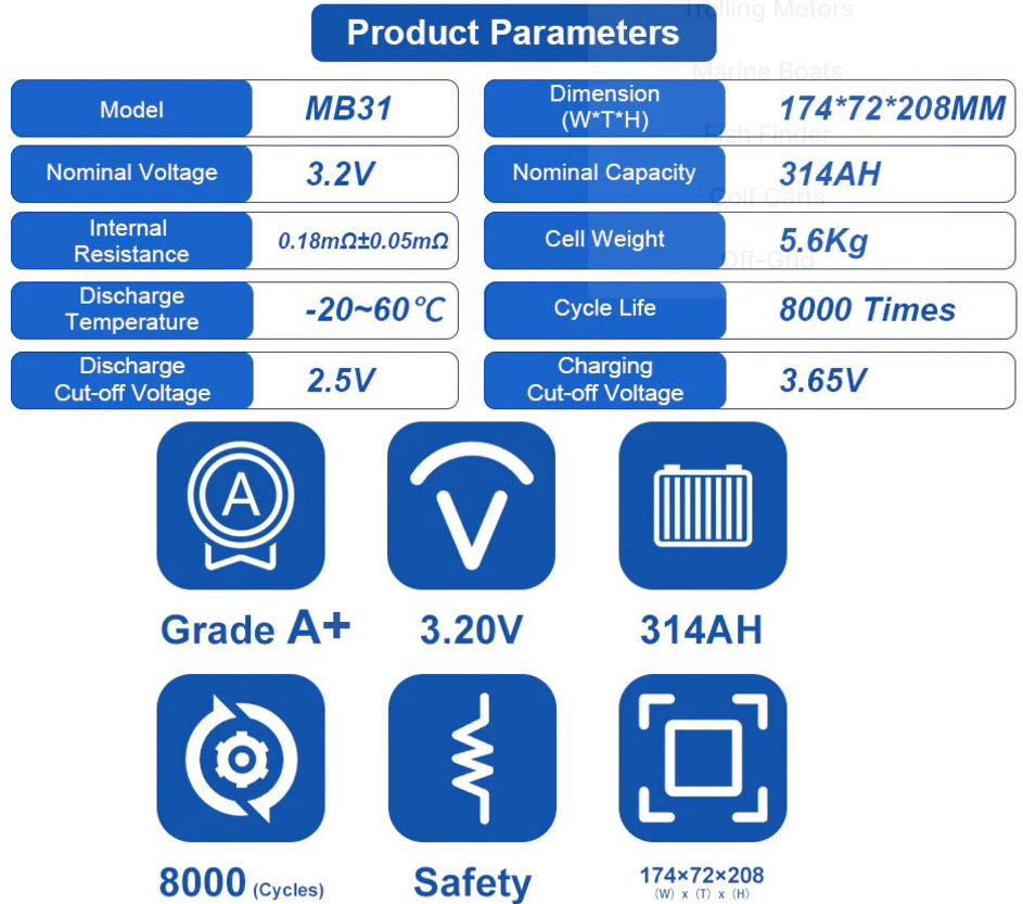 Kotiakku: 7,68 kWh:n kapasiteetilla varustettu Lifepo4 litiumakku, joka koostuu kolmesta moduulista (à 2,56 kWh). Akut sopivat eri jännitteellä toimivien invertterien kanssa, voit kytkeä akkukennot tarpeen mukaan 12V, 24V tai 48V. Katso kuvasta kotiakun tekniset tiedot.