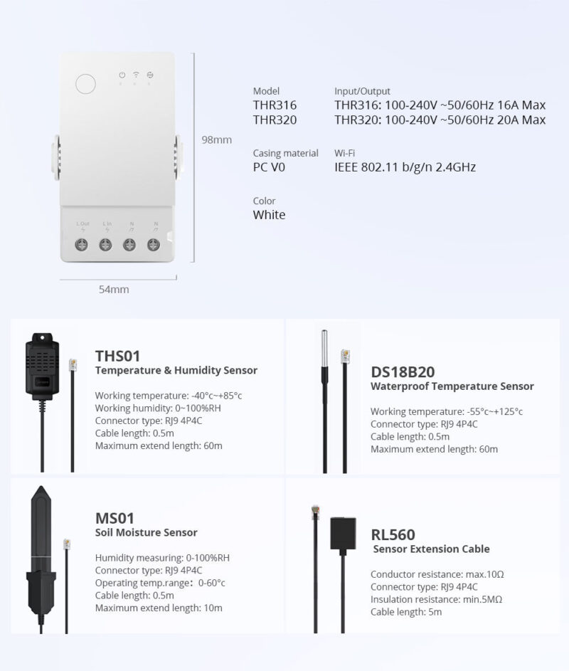 Sonoff TH Origin termostaatti virtakytkin soveltuu erinomaisesti lämmityslaitteiden automaattiohjaukseen lämpötilan perusteella. Ilmankosteus anturin mittaustiedon perusteella voidaan ohjata myös talon ilmanvaihtoa. Sonoff TH termostaatti virtakytkin kytketään laitteen virtajohtoon tai ryhmäkeskukseen johdonsuojan jälkeen, ja liitetään WiFi verkkoon.
