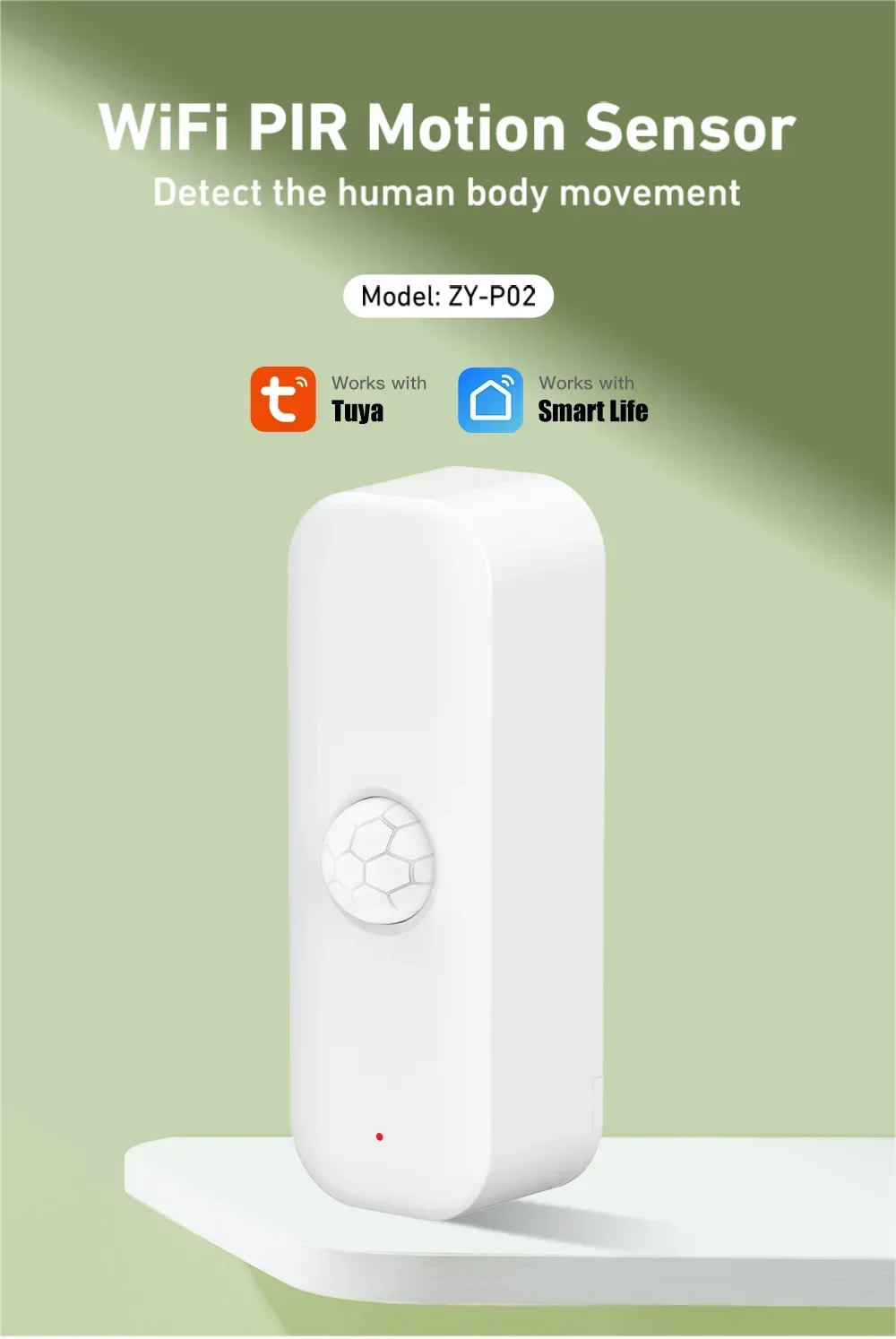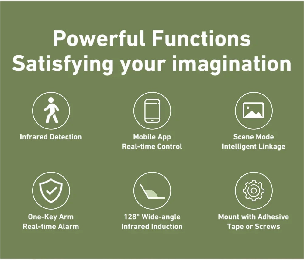WiFi liiketunnistin on erittäin helppo ja nopea ottaa käyttöön, koska se liitetään suoraan langattomaan verkkoon. Et tarvitse erillistä älykoti ohjainta (hub, gateway). Liiketunnistin havaitsee ihmiset, mutta erottaa koirat ja kissat eikä reagoi niihin.